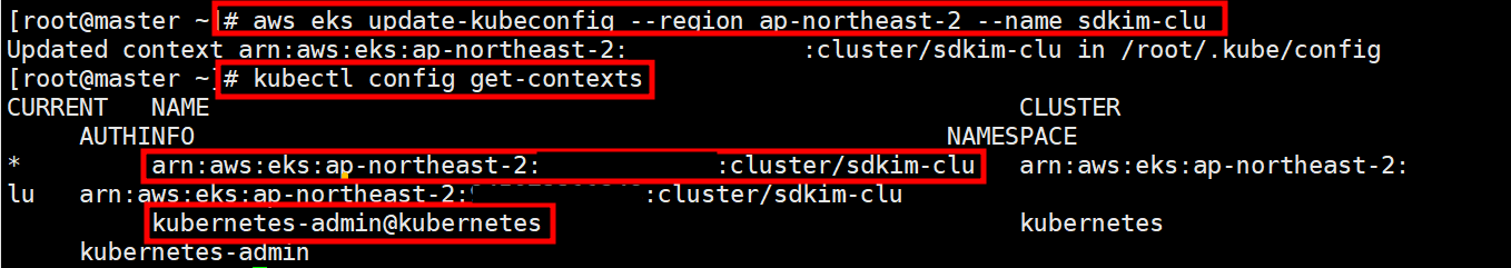 resource "aws_route_table_association" "eksnet_rtass1" { count = 2 subnet_id = aws_subnet.eksnet_mas[count.index].id route_table_id = aws_route_table.eksnet_rota.id } resource "aws_route_table_association" "eksnet_rtass2" { count = 2 subnet_id = aws_subnet.eksnet_work[count.index].id route_table_id = aws_route_table.eksnet_rota.id }1.7. 06_clu.tf