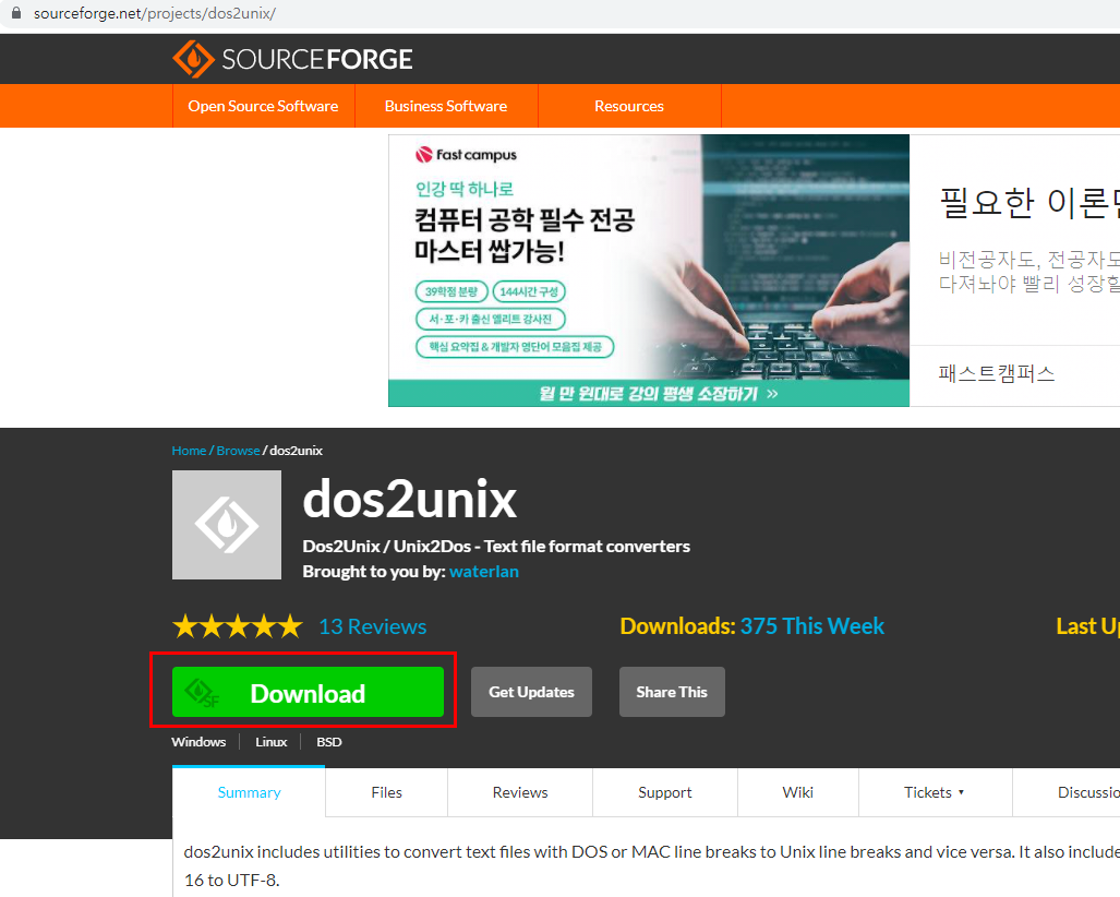 구글 검색 sourceforge.net 접속 후 다운로드를 클릭합니다.