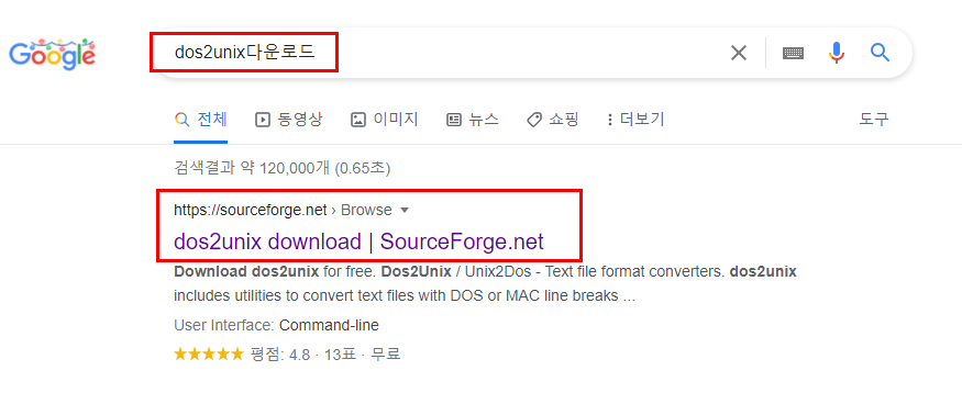 스크립트 그리도 구글 검색에서 dos2unix를 검색합니다.