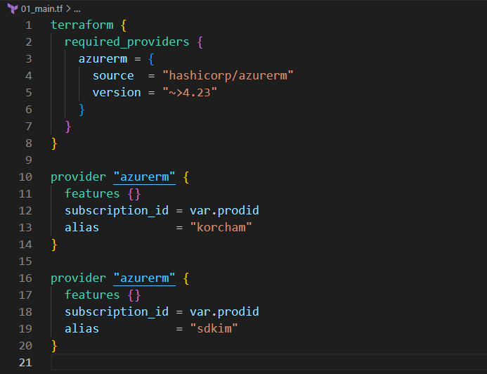 alias를 이용하면 Resource Group 생성 시 다른 구독을 이용할 수 있습니다.