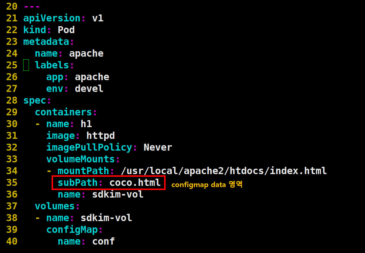이를 volume mount의 subpath로 활용을 하면 쉽게 html을 이용할 수 있습니다.