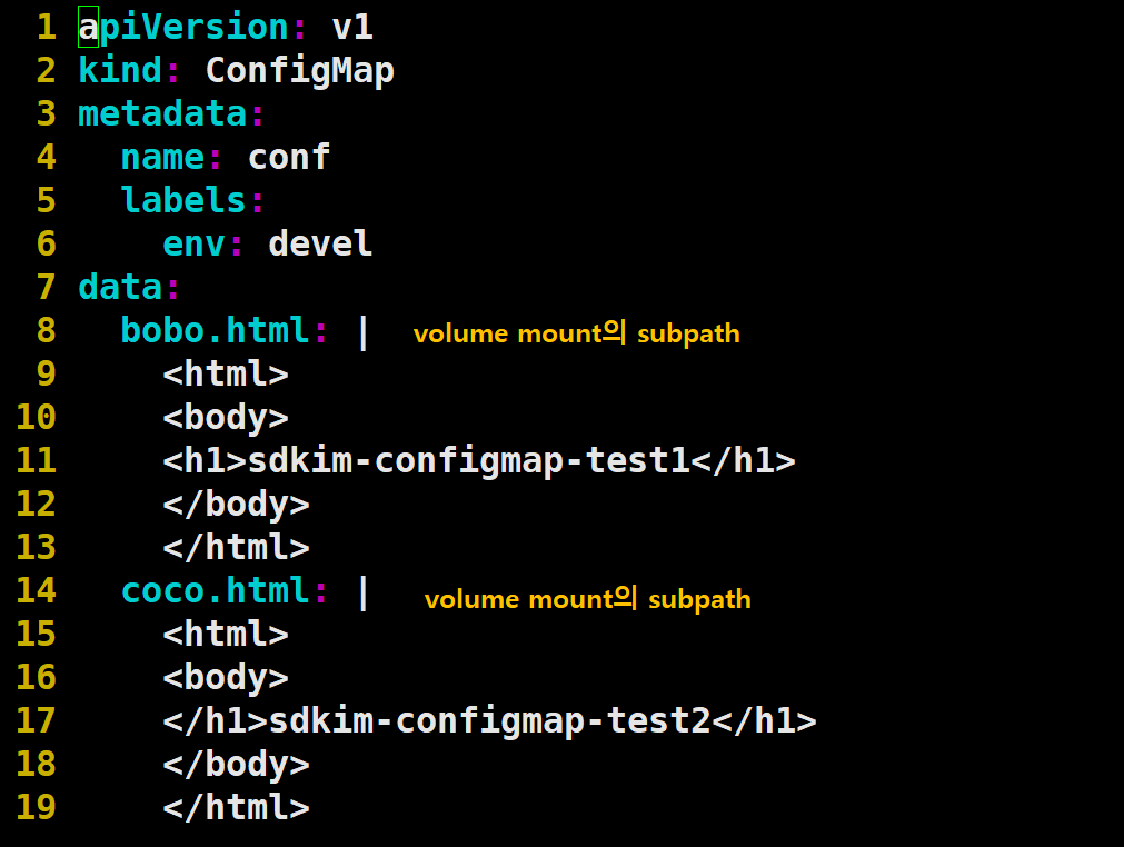 3. subpath에 configmap의 coco.html 영역 참조