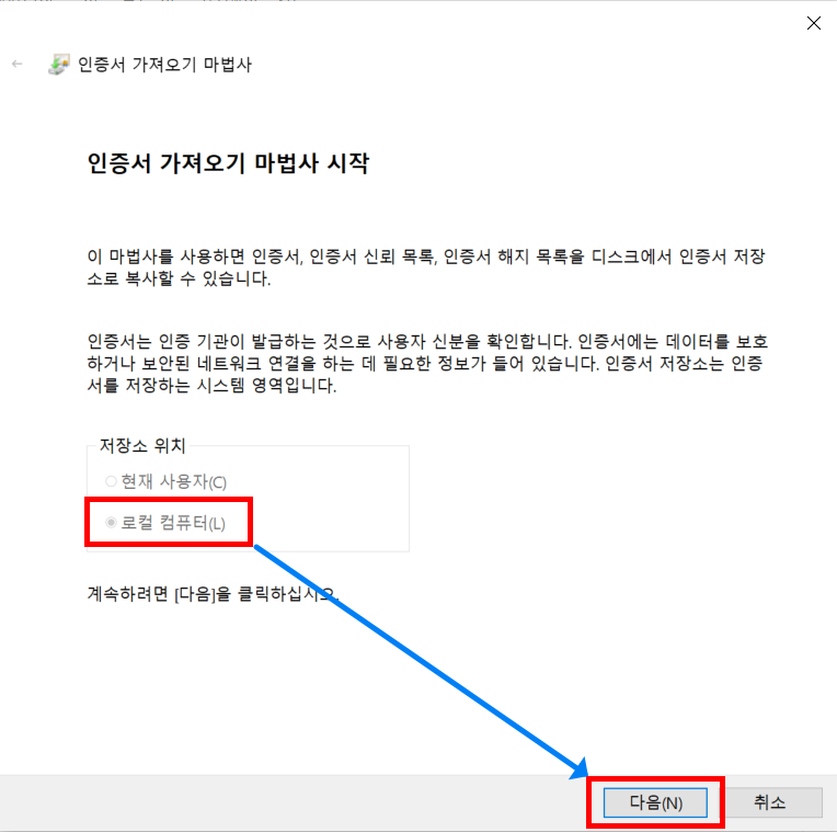9.2.2. 인증서 가져오기 마법사 실행