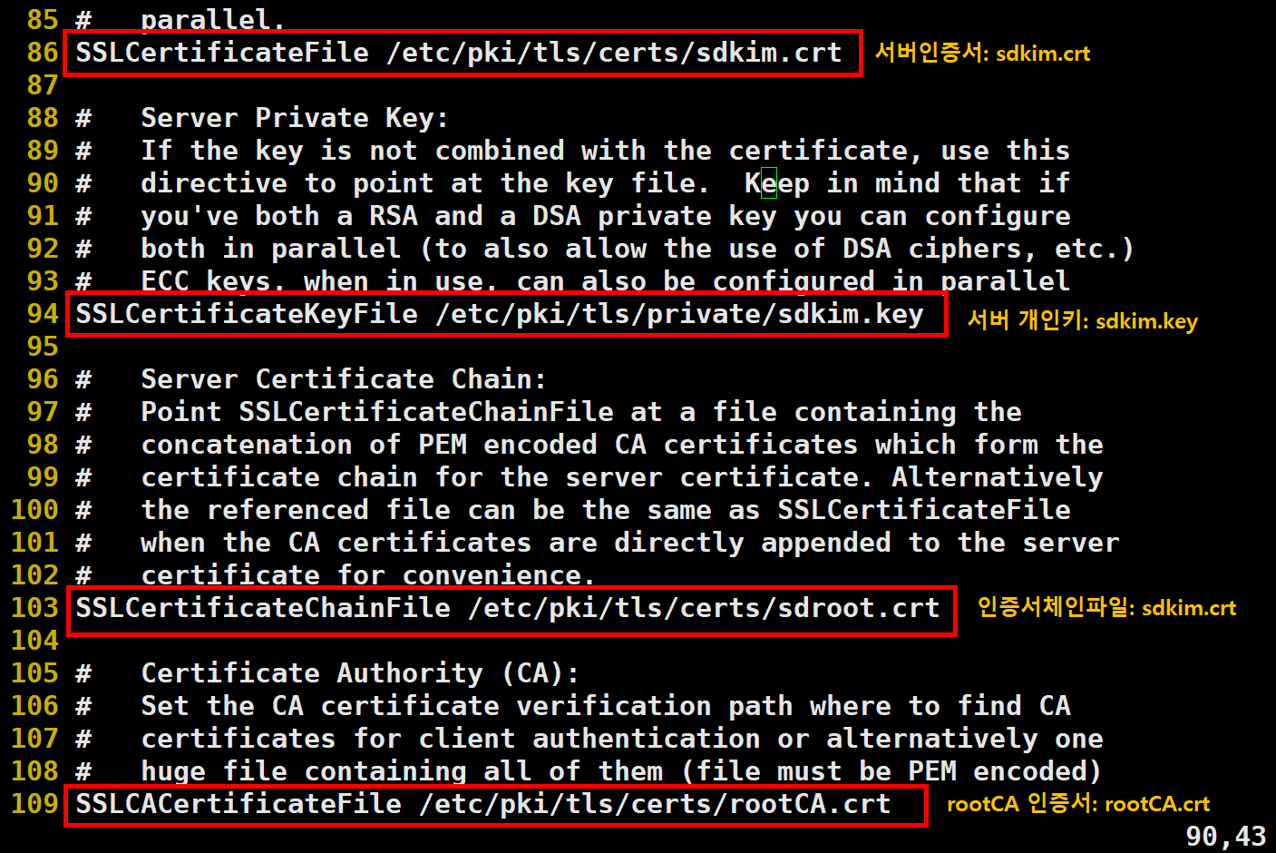 7. /etc/httpd/conf.d/ssl.conf 파일을 수정해 주세요!