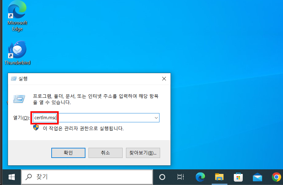 9.1. 실행 -> certlm.msc
