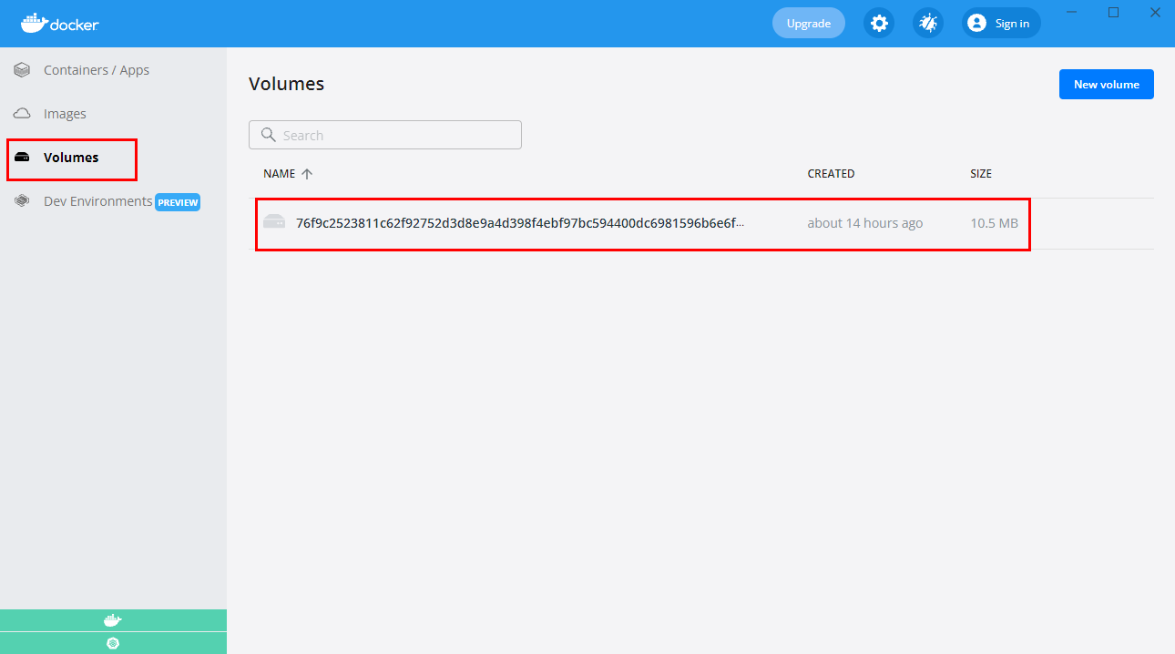Docker Desktop Images 목록 3. image를 실행한 Container가 존재하니 Volumes 역시 하나가 존재 합니다.