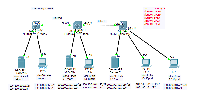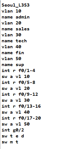 오늘 강의한 L3 Switch의 Routing과 Trunk Mode에 대한 문제입니다.
