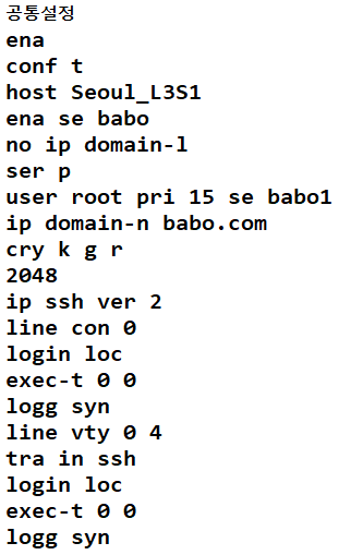 공통설정 중 hostname 부분은 저 처럼 모두 동일하게 하지 마시고