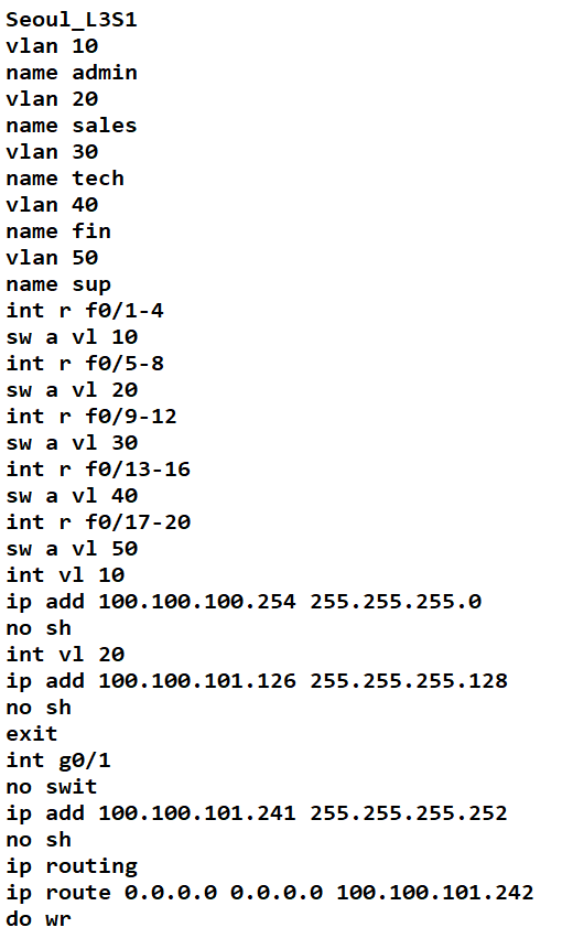 오늘 강의한 L3 Switch의 Routing과 Trunk Mode에 대한 문제입니다.
