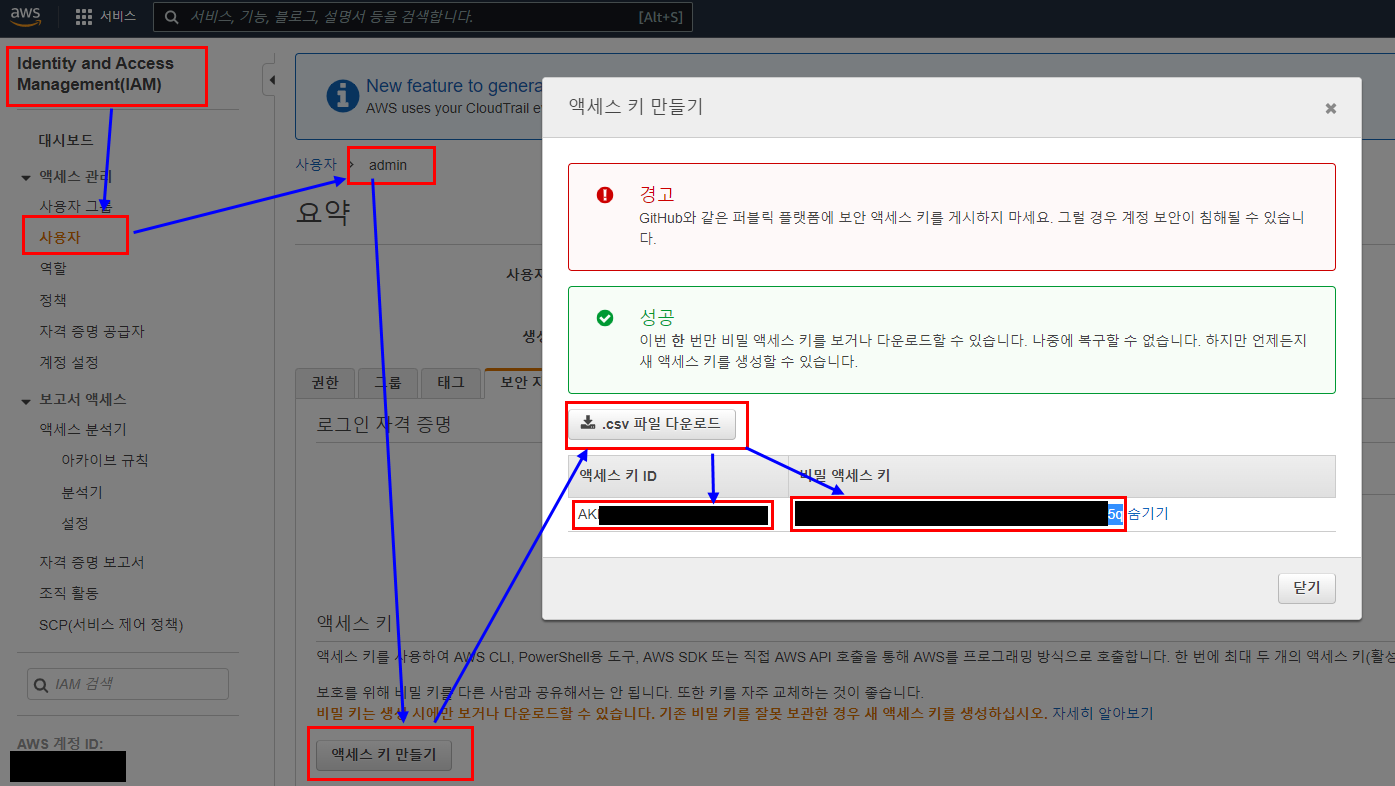 5.3. 생성한 access key 파일을 csv 형태로 다운로드 하여 보관