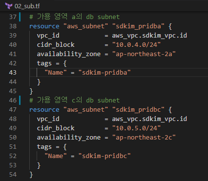 Private Code 4. DB Subnet Code