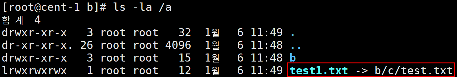 # ln -s b/c/test.txt ../test1.txt