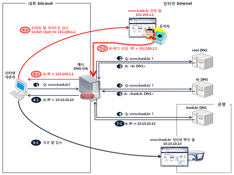 DNSSEC 설정등을 통해서 신뢰하지 않는 DNS의 정보는 수신하지 않도록 합니다.