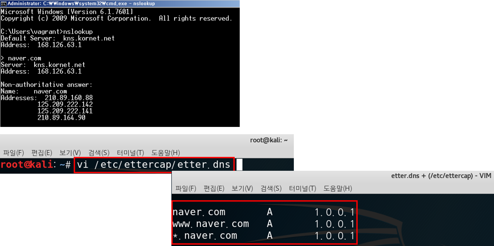 4.4. naver.com 의 ip를 Kali의 IP로 설정