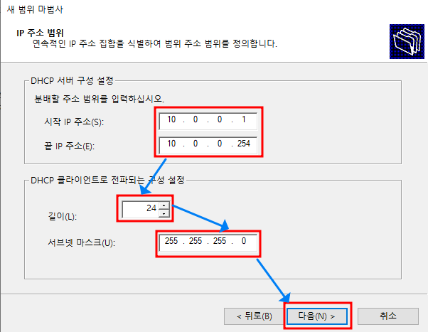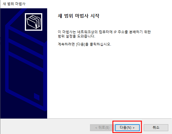 DHCP는 구성 전 IP 범위, 제외주소, 옵션등의 설계가 필요합니다.