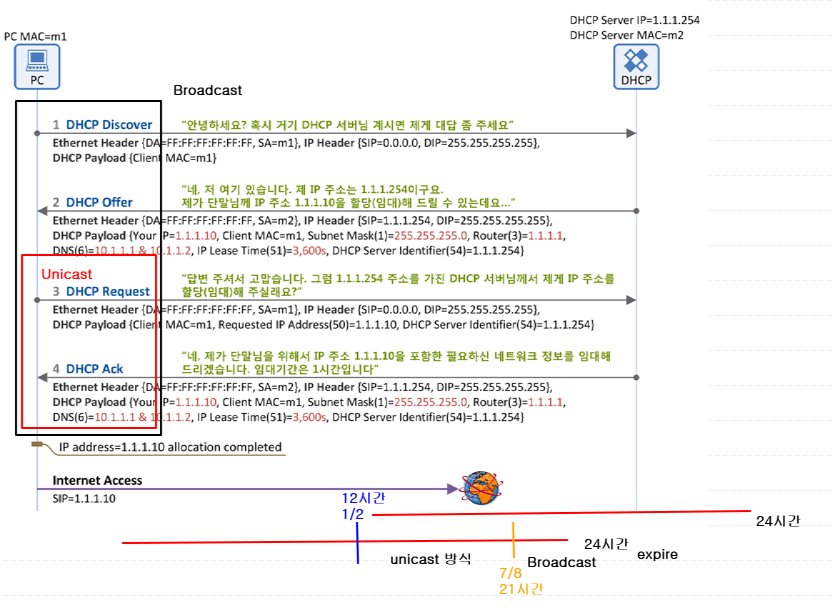 1.3.3. 갱신을 위해 REQUEST -> ACK 만 Unicast 방식으로 이루어 집니다.