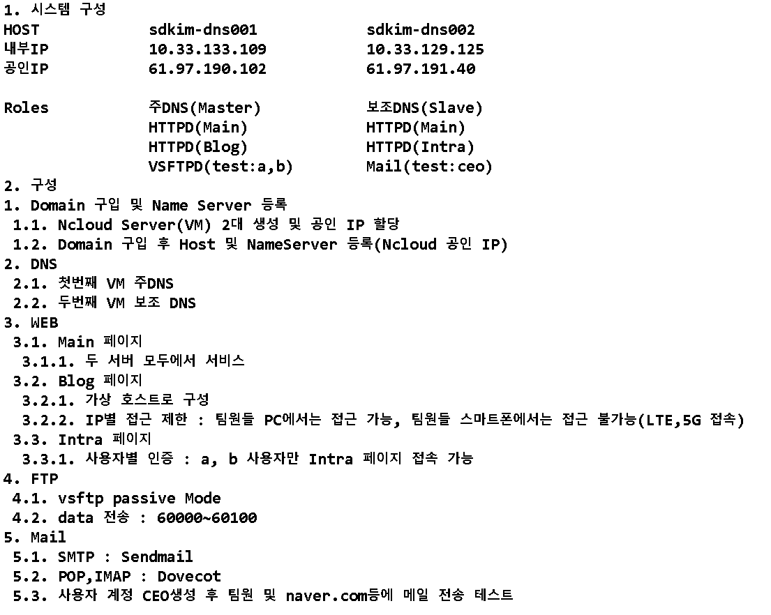 Ncloud 상에 VM을 2대 생성하여 DNS, WEB, VSFTP, Mail를 구성해 보겠습니다.
