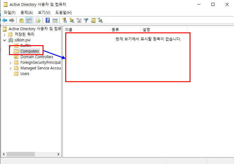 2.2.1. DC의 "Active Directory 사용자 및 컴퓨터" -> Computers