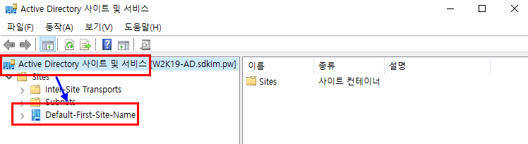 4.2.1. 첫번째 서버의 "Active Directory 사이트 및 서비스"