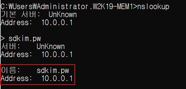 1.2.1. DNS설정을 정상적으로 변경했다면 cmd창에서 조회가 잘 되어야 합니다.