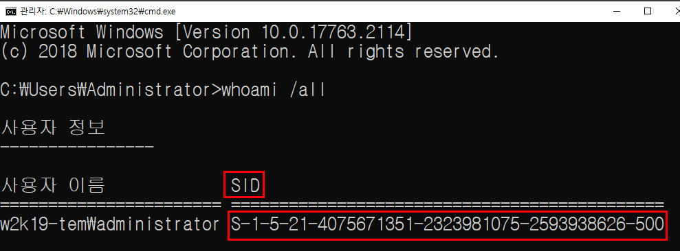 이른 SID(Sucurity Identity)라고 합니다.