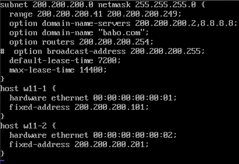 2.2.1. # vi /etc/dhcp/dhcpd.conf