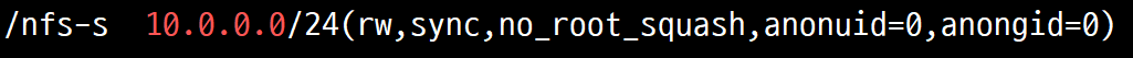 1.3.1.1. /nfs-s 10.0.0.0/24(rw,sync,no_root_squash,anonuid=0,anongid=0)