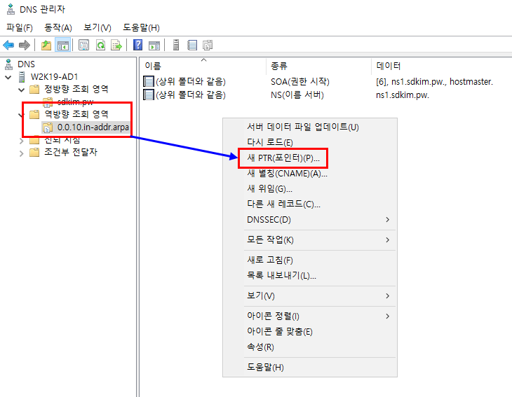 WindowsServer2019 : 2. DNS Configuration - 역방향 조회영역