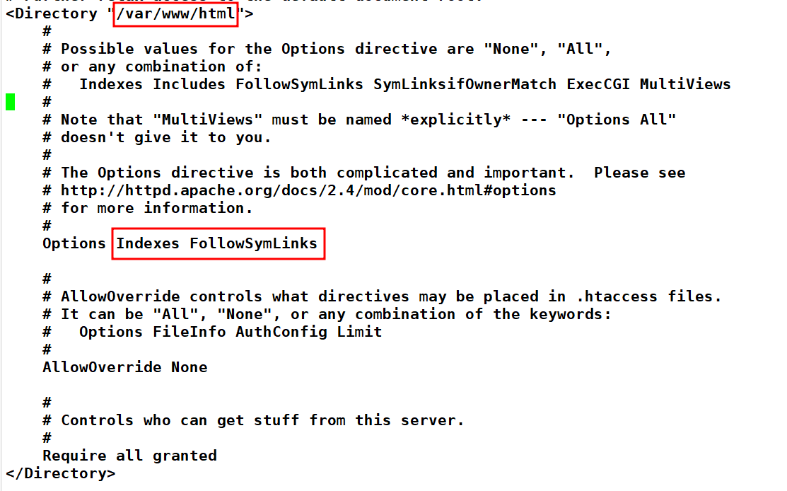 1.2.2. Options 지시자 뒤의 Indexes와 FollowSymLinks 확인