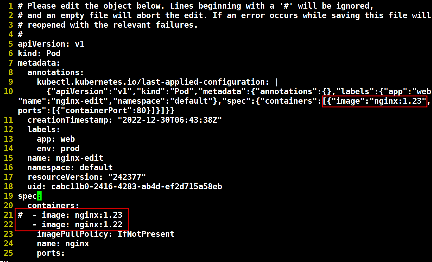 # kubectl edit pod nginx-edit