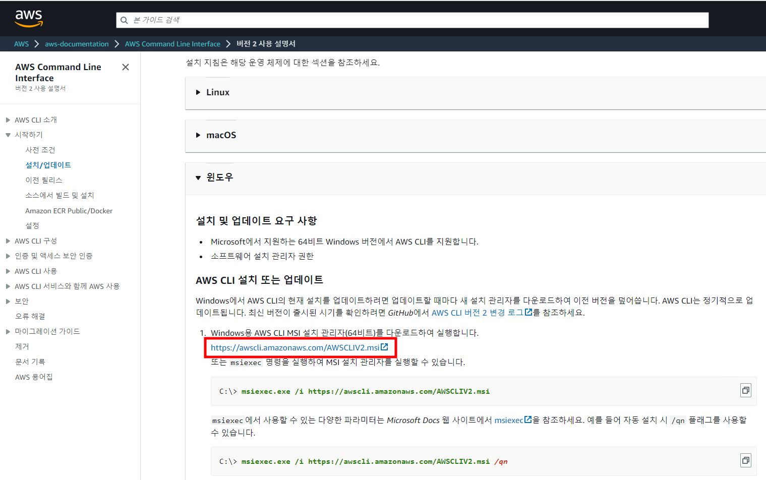 2.1.1. 아래 사이트에서 CLI v2 다운로드
