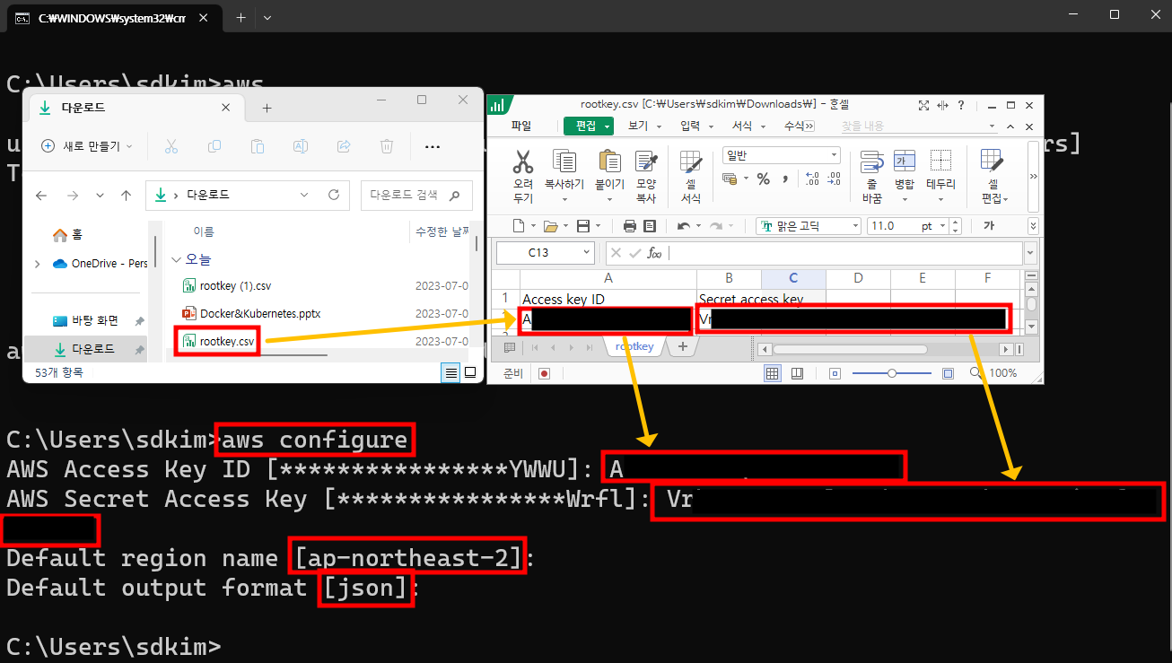 2.2.1. 윈도우의 cmd 창엣 aws configure 명령어 실행