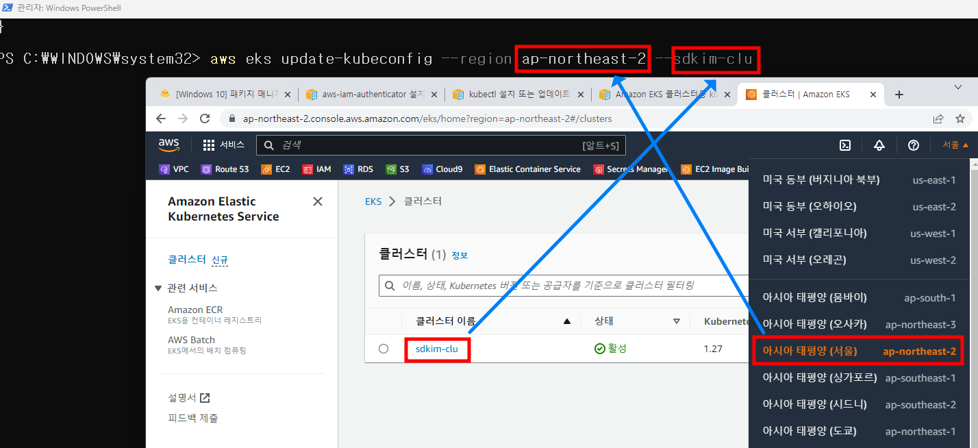 aws eks update-kubeconfig --region ap-northeast-2 --name sdkim-clu