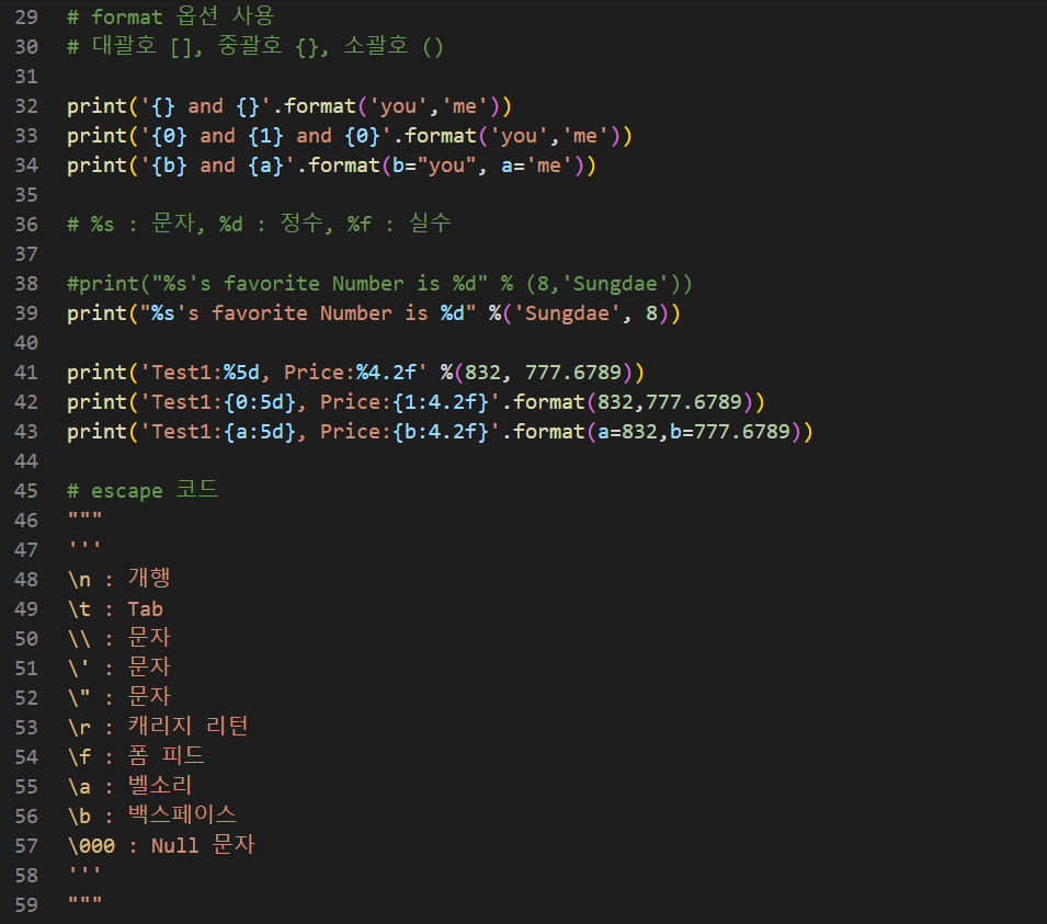 # escape 코드
