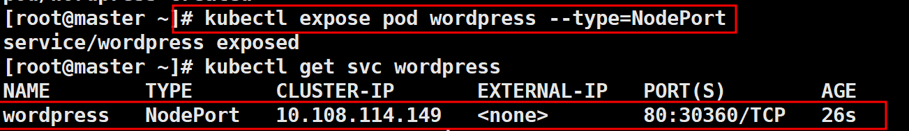 # kubectl run wordpress --image=wordpress:5.6 --port=80 \