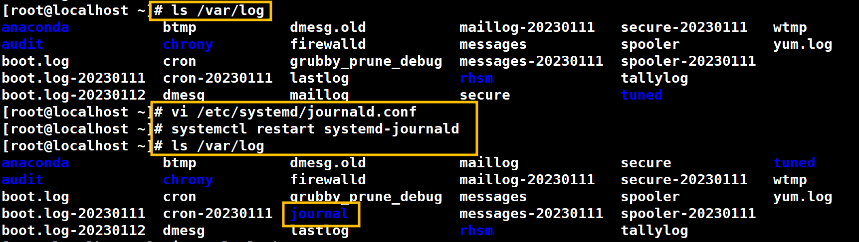 2.2.1.1. /var/log/journal 디렉토리가 없는 경우 systemd-journald 서비스가 생성
