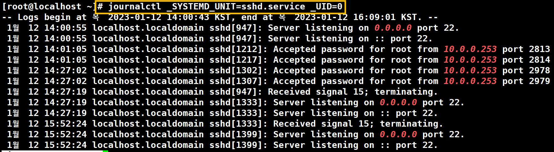 1.3.3. # journalctl _SYSTEMD_UNIT=sshd.service _UID=0