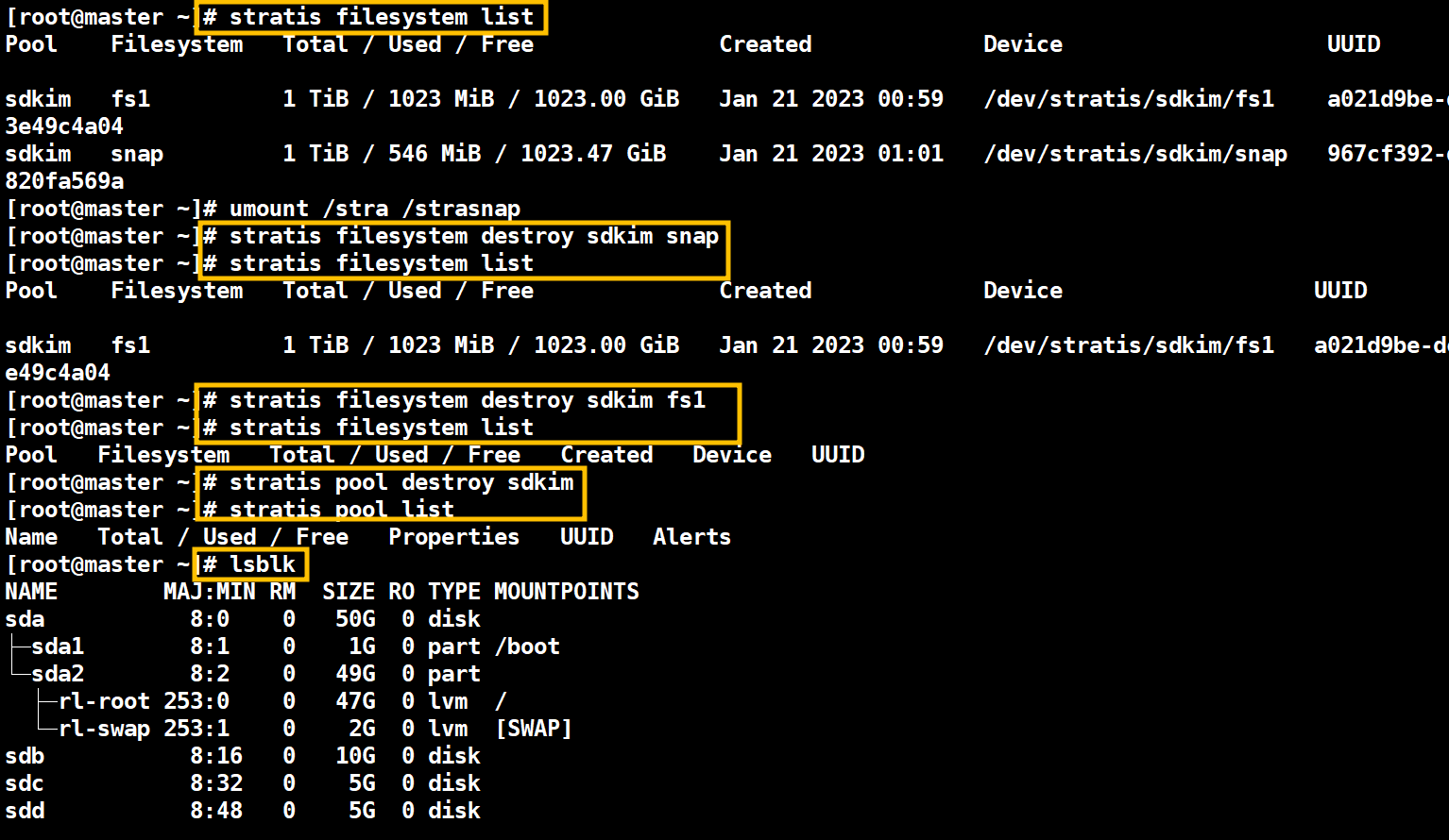 [root@master ~]# stratis pool add-data sdkim /dev/sdd