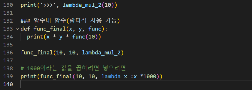 ### 함수내 함수(람다식 사용 가능)