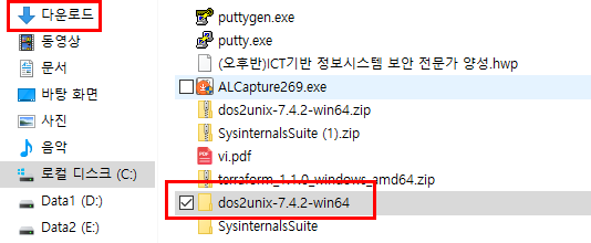 해당 폴더 클릭 후 bin 디렉토리로 이동 후