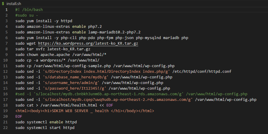 단 ec2-user로 ssh로그인 하기 때문에 sudo 를 다 붙여 주셔야 합니다.