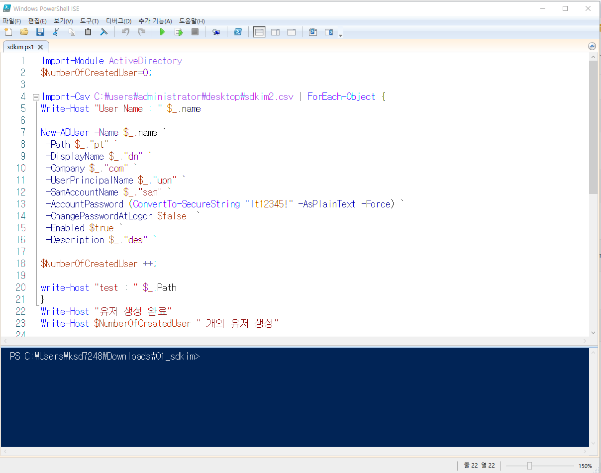 Write-Host $NumberOfCreatedUser " 개의 유저 생성"