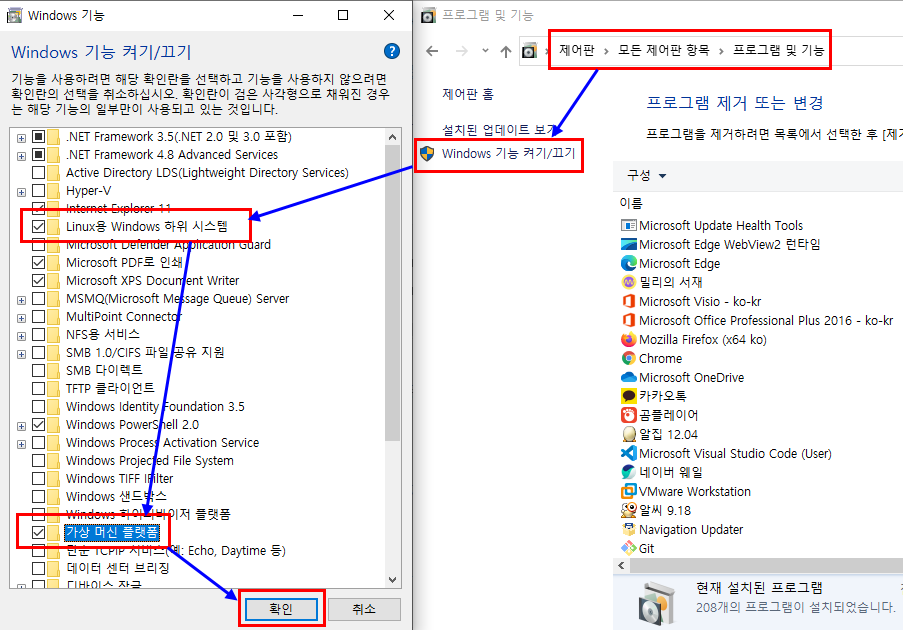 명령줄 또는 powershell로 설치하셔도 되고 아래 그림처럼 프로그램및기능을 활용하셔도 되세요!