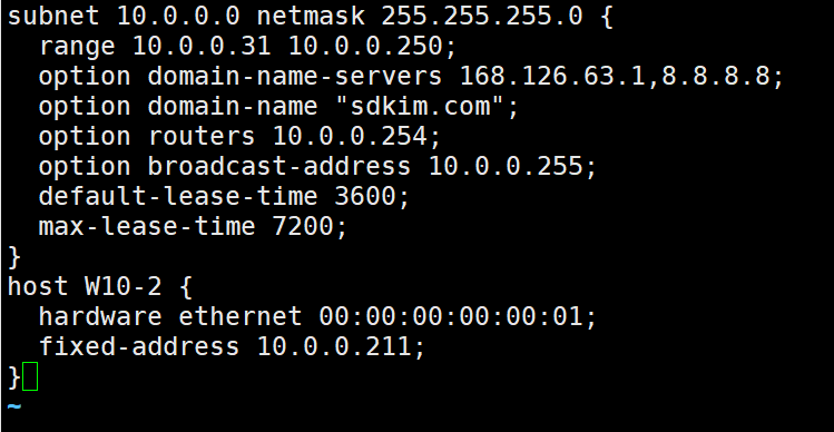 # vi /etc/dhcp/dhcpd.conf
