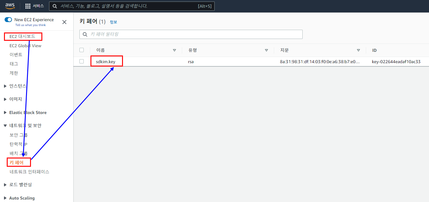 --key-name : aws console에 나타나는 이름