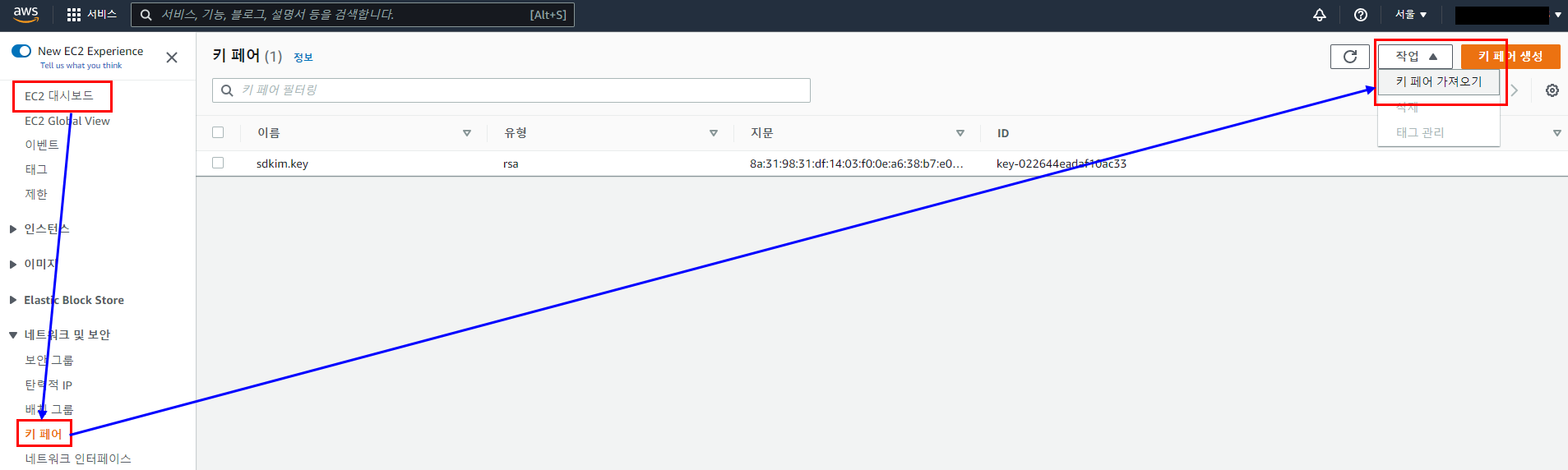 1..2. 따라서 첫번째 작업은 이 key pair를 생성해야 합니다.