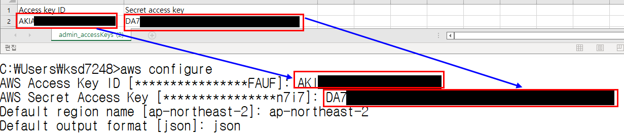 리전과 output format은 서울 리전과 json 형식으로