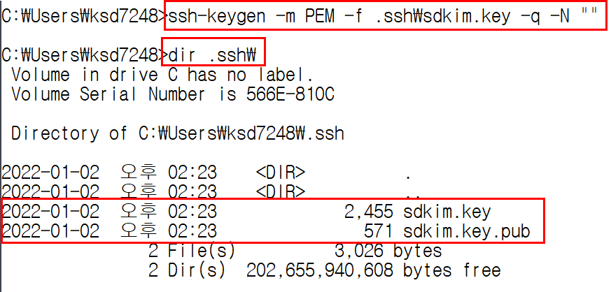# ssh-keygen -m PEM -f .ssh\sdkim.key -q -N ""
