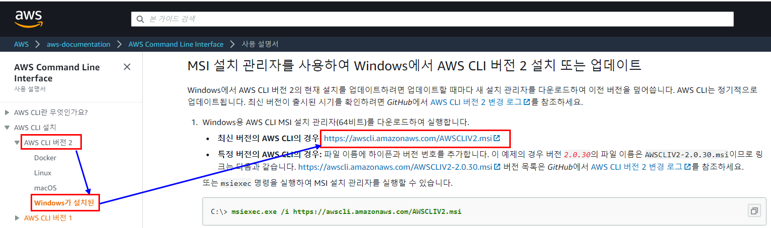 4. aws cli version 2 다운로드 및 설치